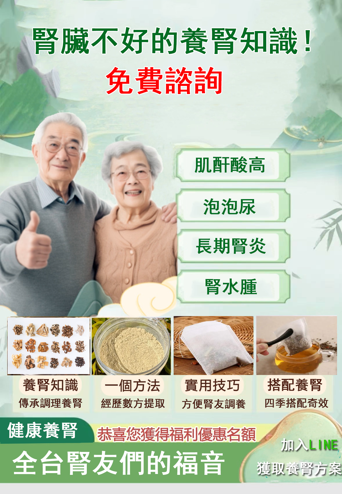 追蹤調查顯示,台灣總洗腎人口超過9萬人,慢性腎臟病折磨著數萬民眾。養腎護腎指導強調:「不用洗腎也不用透析」從腎臟系統根本調理養護,多數腎友了解了養腎知識,在家就能調理。養腎護腎已幫助無數腎友改善減少痛苦。